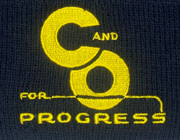 This is a brand new 12″ acrylic knit beanie embroidered with the C & O for Progress logo. Cap features high quality direct embroidered logo. This is not a patch applique. One size fits most.