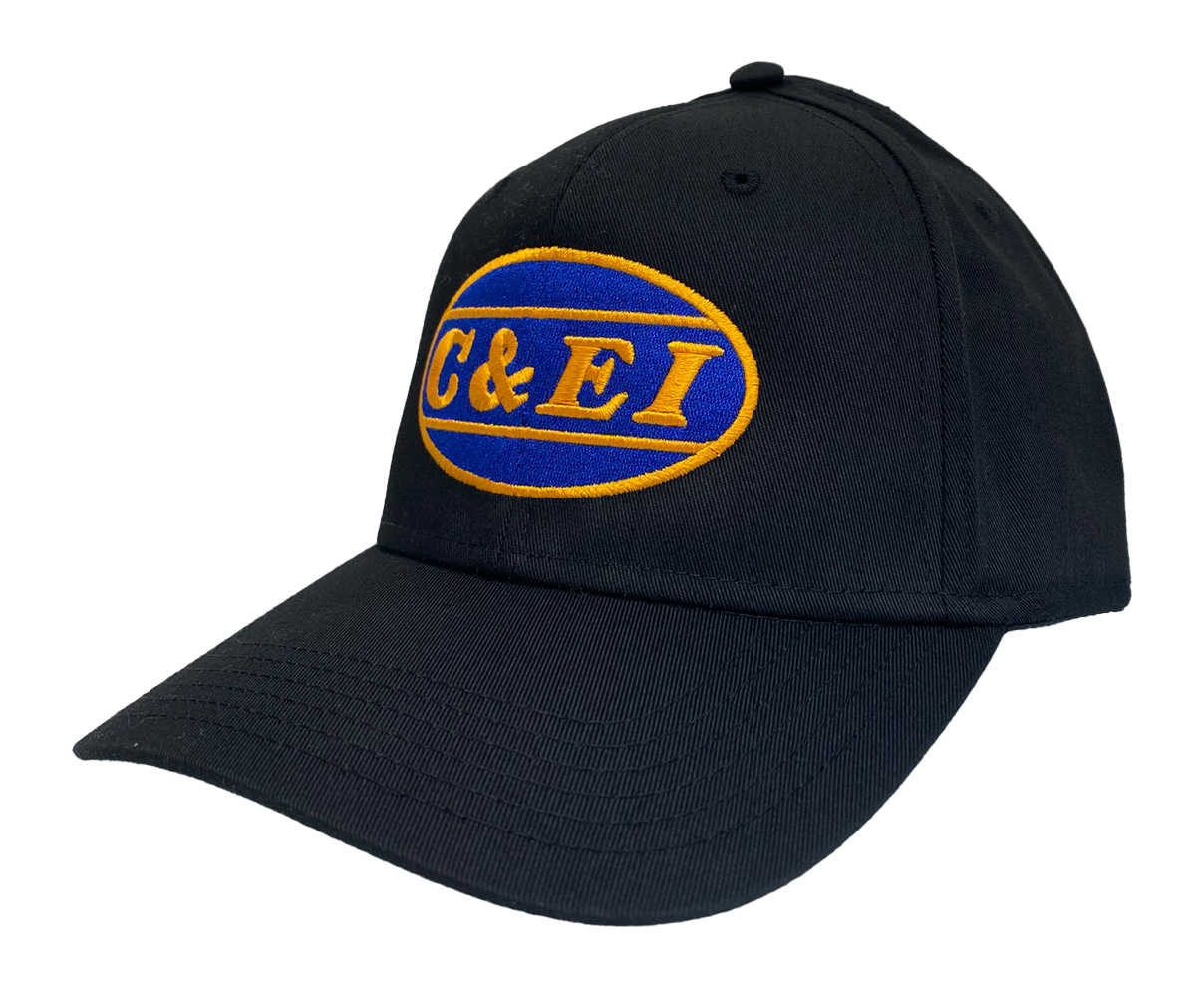 This is a brand new cotton twill cap with adjustable snap band embroidered with the C & EI logo.  Cap features high quality direct embroidered logo.  This is not a patch applique.