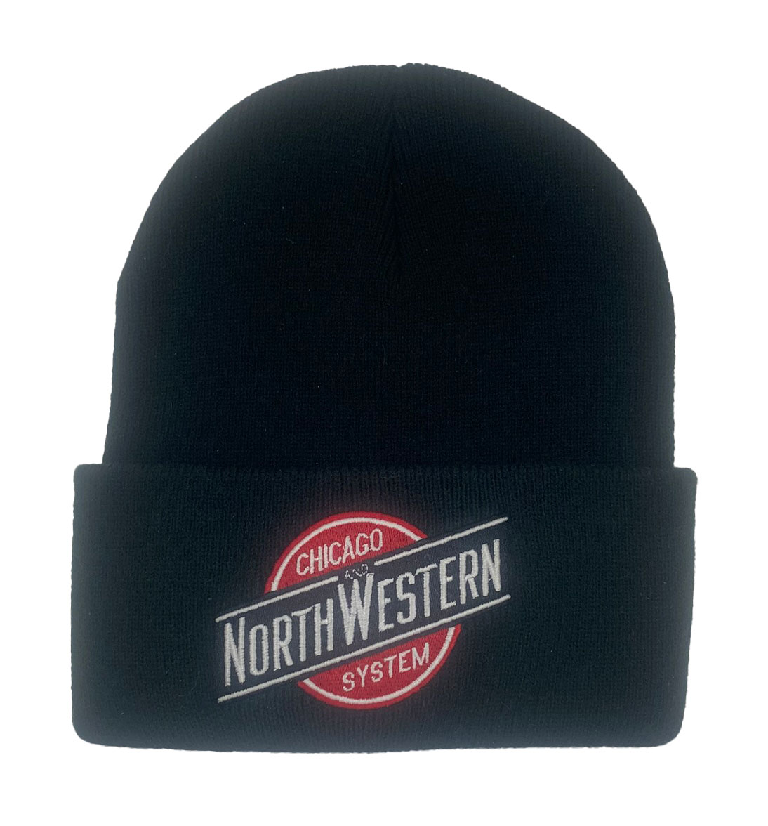 This is a brand new 12″ acrylic knit beanie embroidered with the Chicago & Northwestern System logo. Cap features high quality direct embroidered logo. This is not a patch applique. One size fits most. Choose black or dark green beanie.