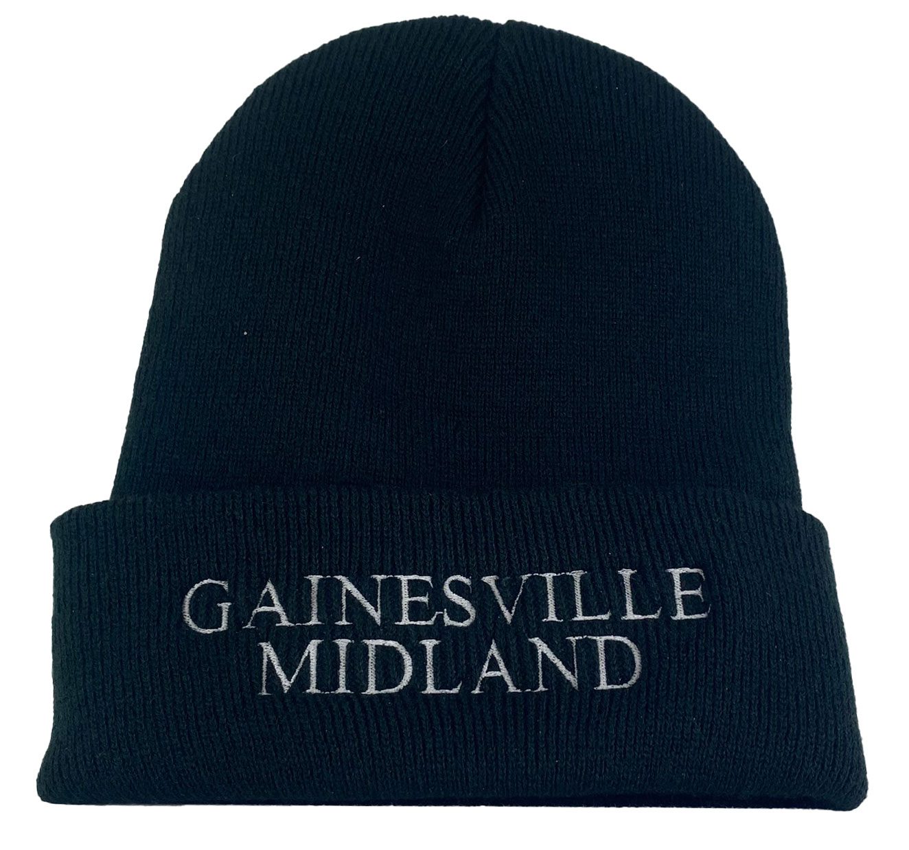 This is a brand new 12″ acrylic knit beanie embroidered with the Gainesville Midland name. Cap features high quality direct embroidered logo. This is not a patch applique. One size fits most.