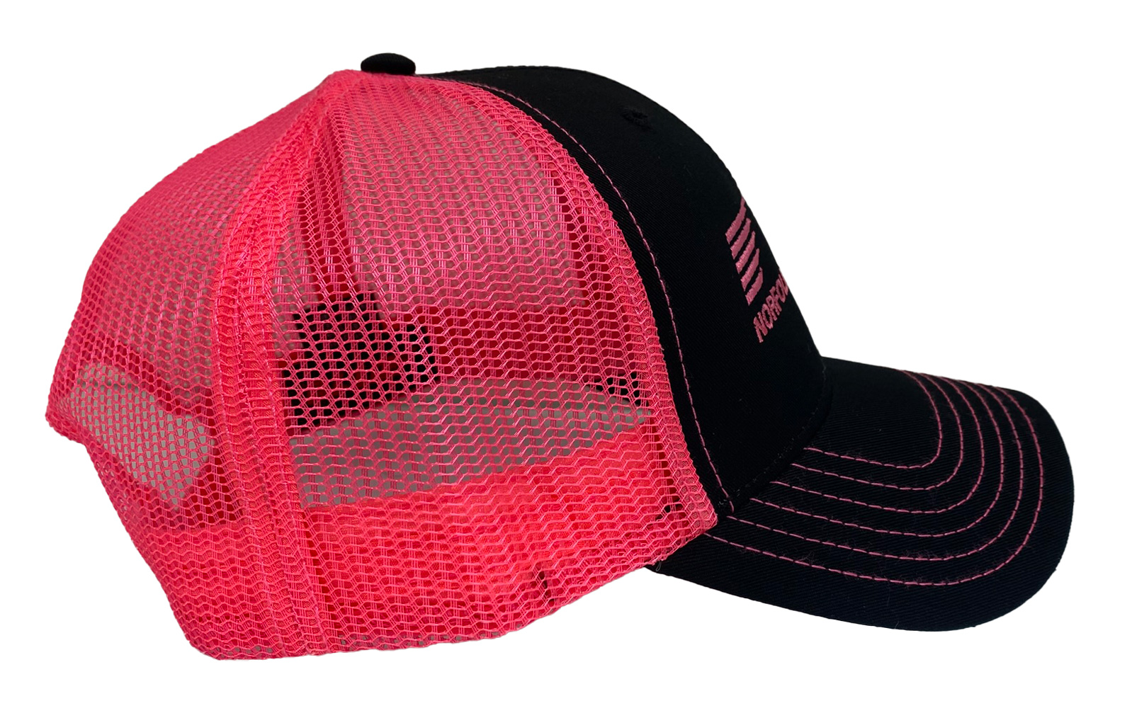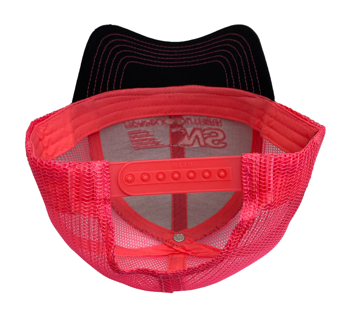 | Cap Color | Black Front with Neon Pink or White Mesh Back |